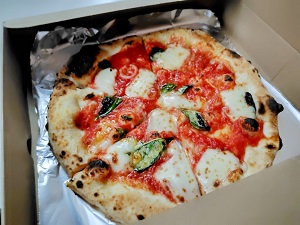 このお祭りは年に1度のもので、近場の飲食店が屋台を出してるんですが、1500円くらいのピザが1000円で出てるイタリアンがあるってことで買ってみました。
