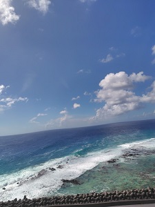 一周27kmくらいの島で、7時間もあれば一周できるそうですが、やれるか!バスもあるんですが、1時間に1本あるかないかくらいなんで、ここはもうタクシー!で、イーフビーチなるところに行ってきました。