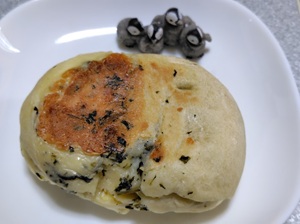 いや、高菜おやき感がすごいですが、フォカッチャ風パンです。