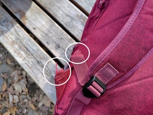 肩紐の根元部分がぶちぃ!なので、太い部分を手でつかんで、持ち上げるようにして先に進みましたよ…。