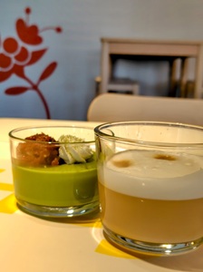 こちら、IKEAで休憩中にいただいていた抹茶プリンとカプチーノ。