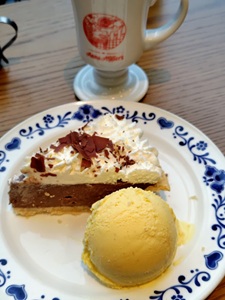 アイスを添えてアラモードに!このアイスも美味しい。アイスだ。正しいバニラアイスだ!チョコケーキも美味しい。嬉しい!うまうまでございました。