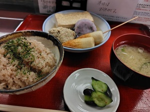 慎吾がこないだ金沢行ったばかりですから、近江町市場でコロッケ食べたいとか、チャンピオンカレー行きたいとか、色々思ってたんですが、そんな時間はないよ!ということで、金沢駅で金沢おでんをいただきました。