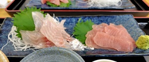黄鯛と、なんらかのマグロです。こういう鮮魚店のお刺身は、新鮮!歯ごたえ!というイメージでしたが、いただいたら柔らか!うま!でよかったです〜♪