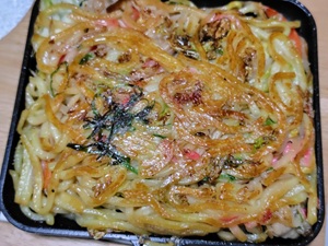 カリっとさせたくてホットサンドメーカーで焼き固めてるんですが、根性が足りないっていうんですかね…。